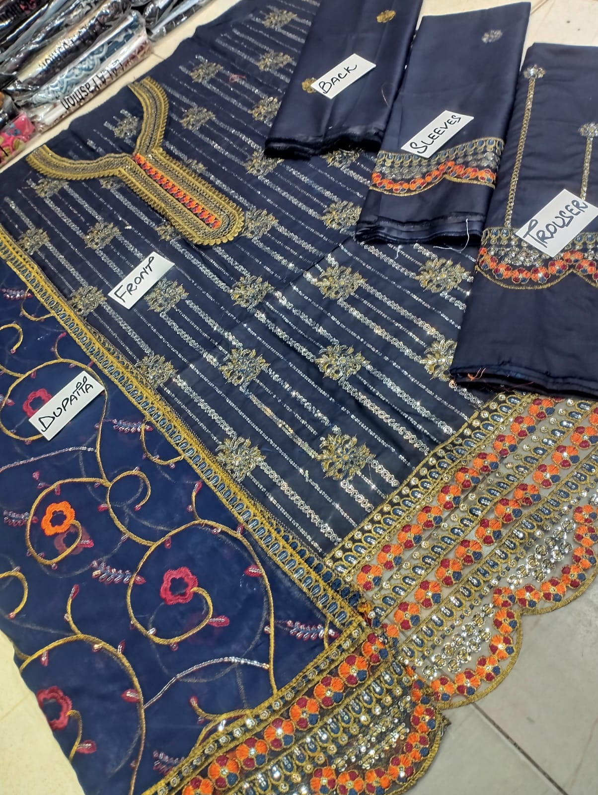 Full embroidered front with sparkling sequence work